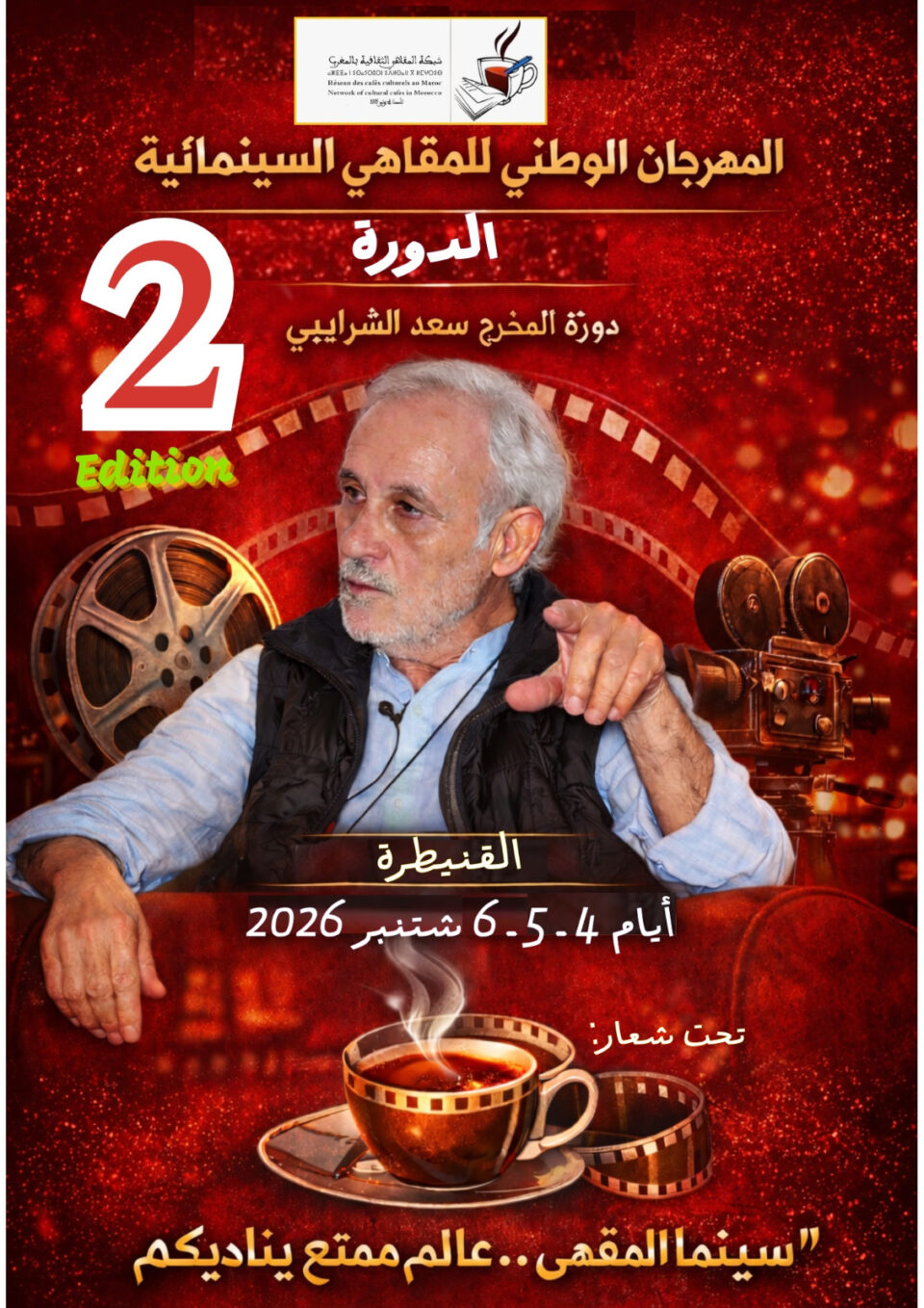 تستعد مدينة القنيطرة لاحتضان فعاليات الدورة الثانية من المهرجان الوطني للمقاهي السينمائية، الذي تنظمه شبكة المقاهي الثقافية بالمغرب أيام 4 و5 و6 شتنبر 2026، في إطار الجهود الرامية إلى تعزيز الثقافة السينمائية بالمغرب وتقريب الفن السابع من مختلف فئات المجتمع، وترسيخ دور المقاهي الثقافية كفضاءات بديلة للنقاش والإبداع الفني.