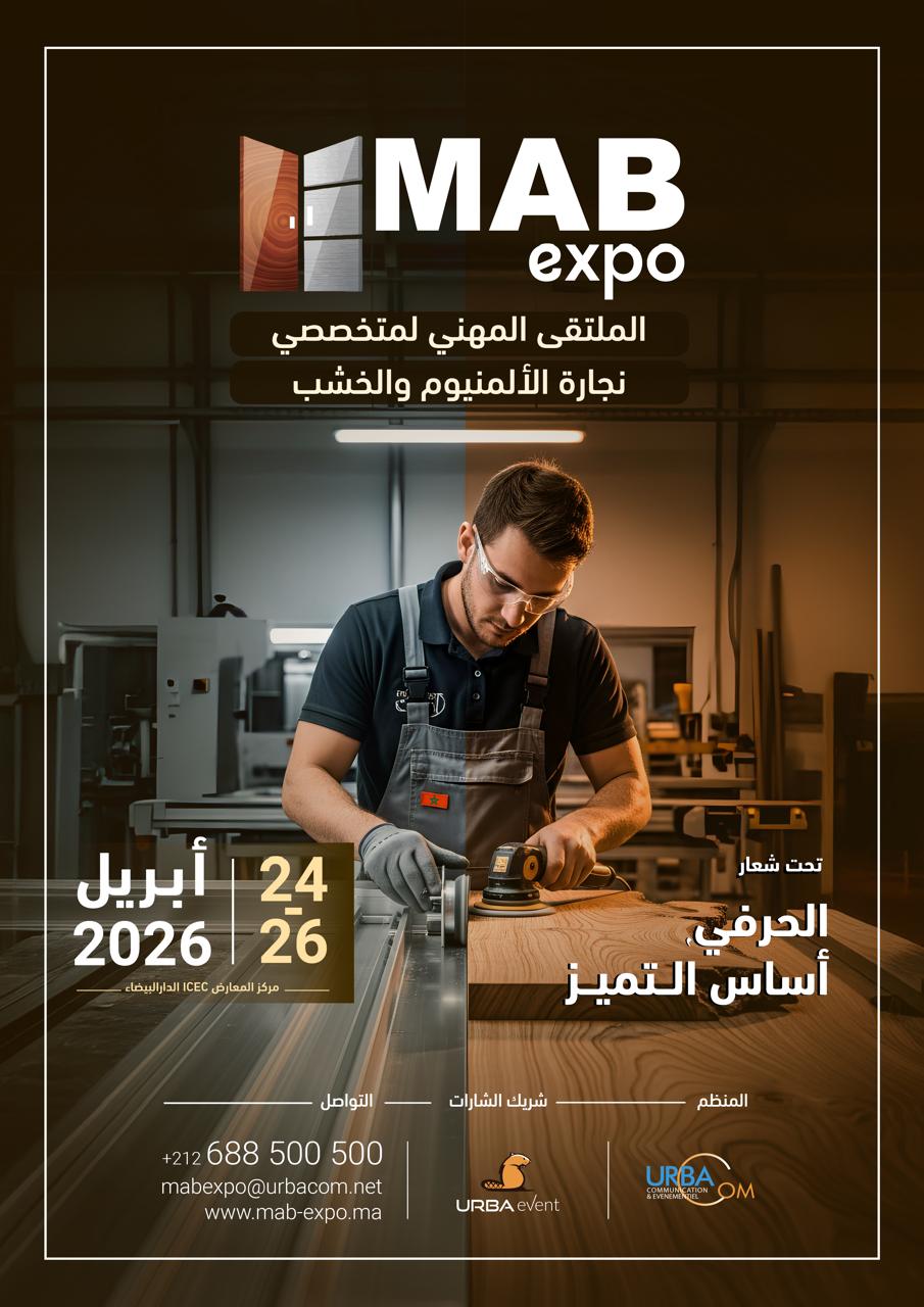 تستعد مدينة الدار البيضاء لاحتضان حدث مهني جديد يعنى بقطاع نجارة الألمنيوم والخشب، من خلال إطلاق الدورة الأولى لمعرض “MAB Expo” المرتقب تنظيمه في الفترة ما بين 24 و26 أبريل 2026 بمركز المعارض ICEC، في خطوة تروم تعزيز دينامية هذا القطاع الحيوي وربط جسور التواصل بين مختلف المتدخلين فيه.