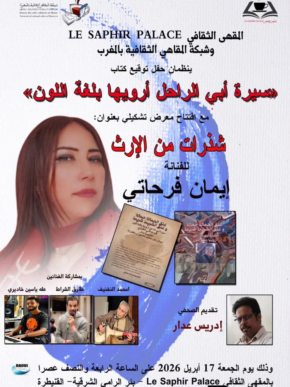 تستعد مدينة القنيطرة، يوم الجمعة 17 أبريل 2026، لاحتضان فعالية ثقافية وفنية متميزة، تنظمها “لوسافير بلاص” بشراكة مع شبكة المقاهي الثقافية بالمغرب، وذلك في إطار تعزيز الحركية الثقافية والانفتاح على مختلف التعبيرات الإبداعية.